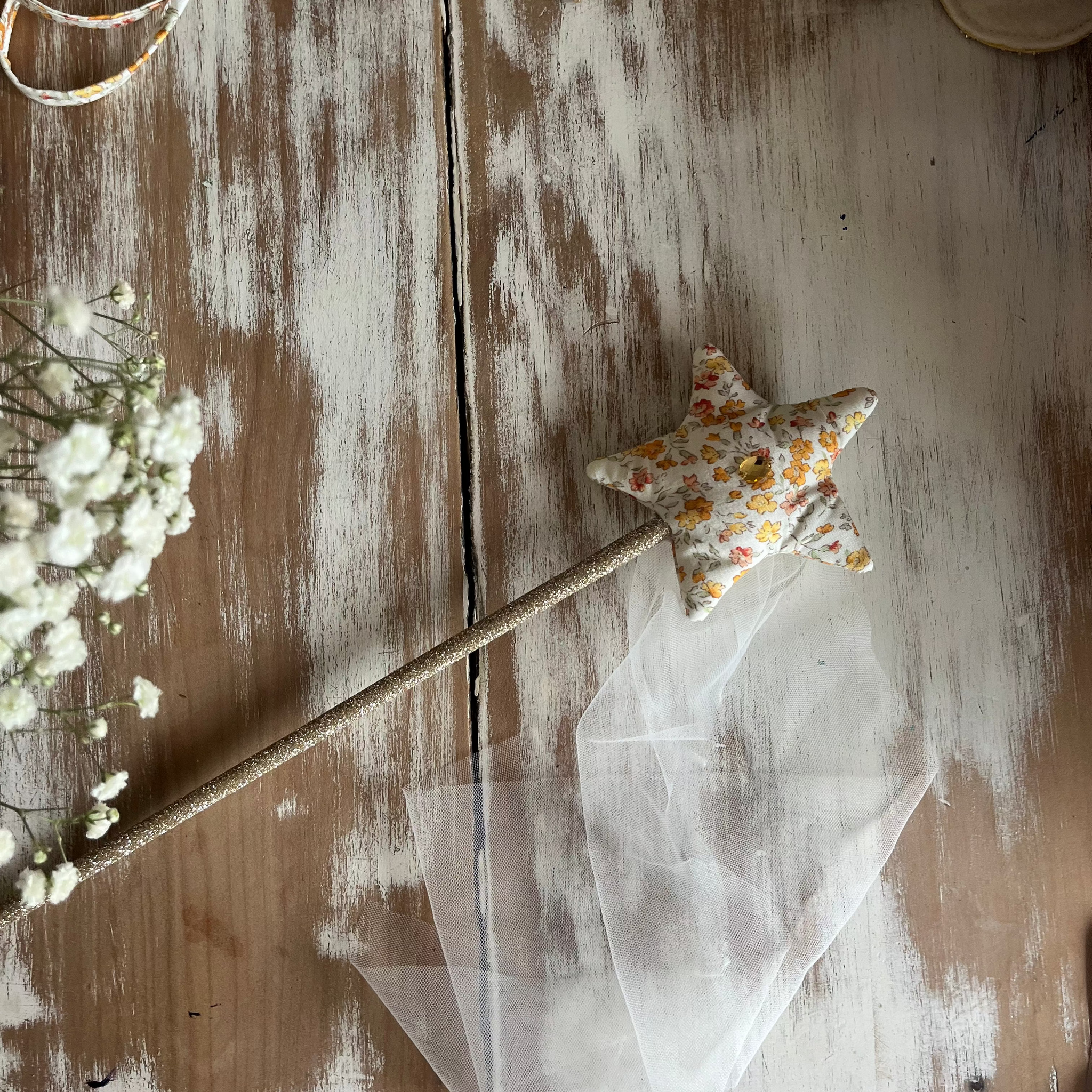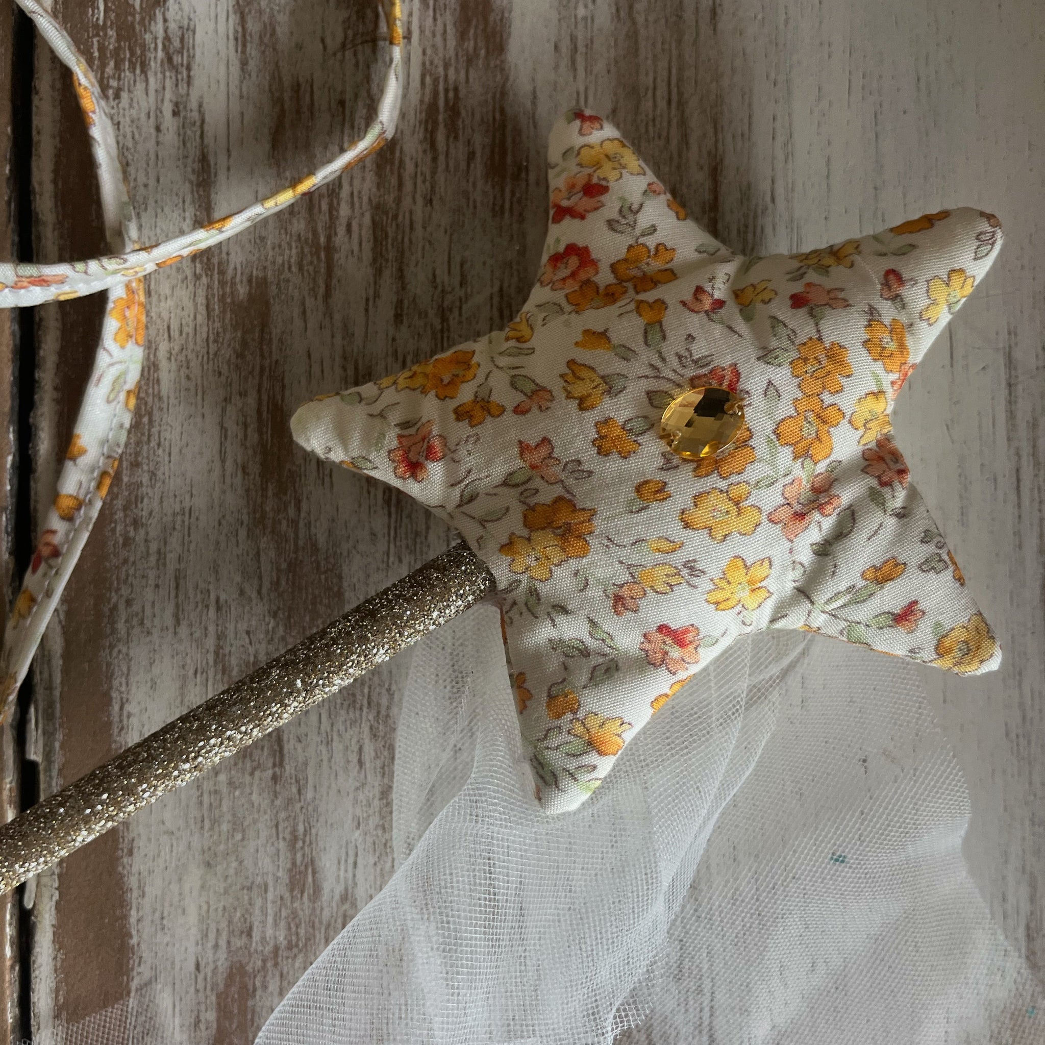 soft cotton fairy wand with soft tulle tail and glitter stick