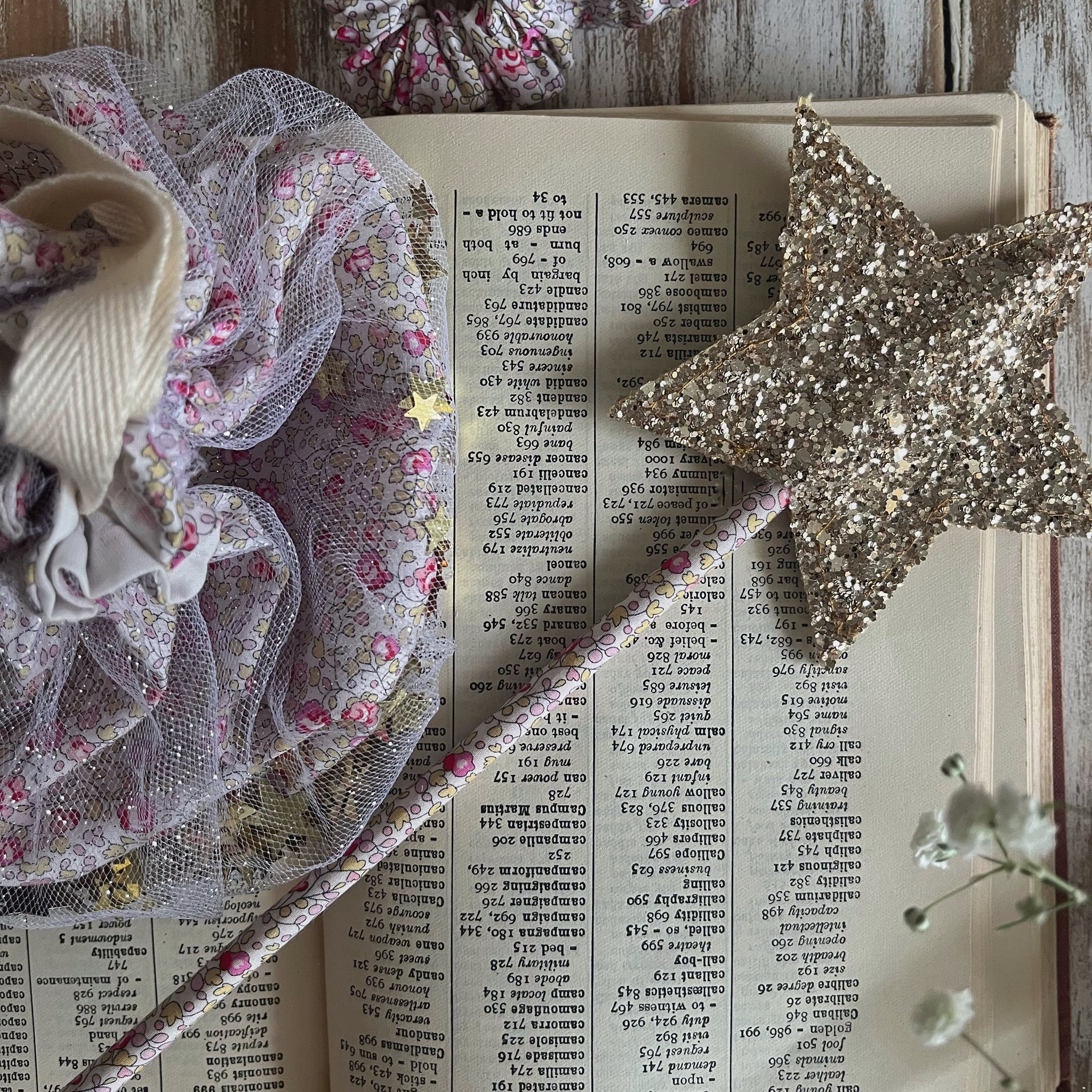 Cotton with glitter tulle and stars inside.