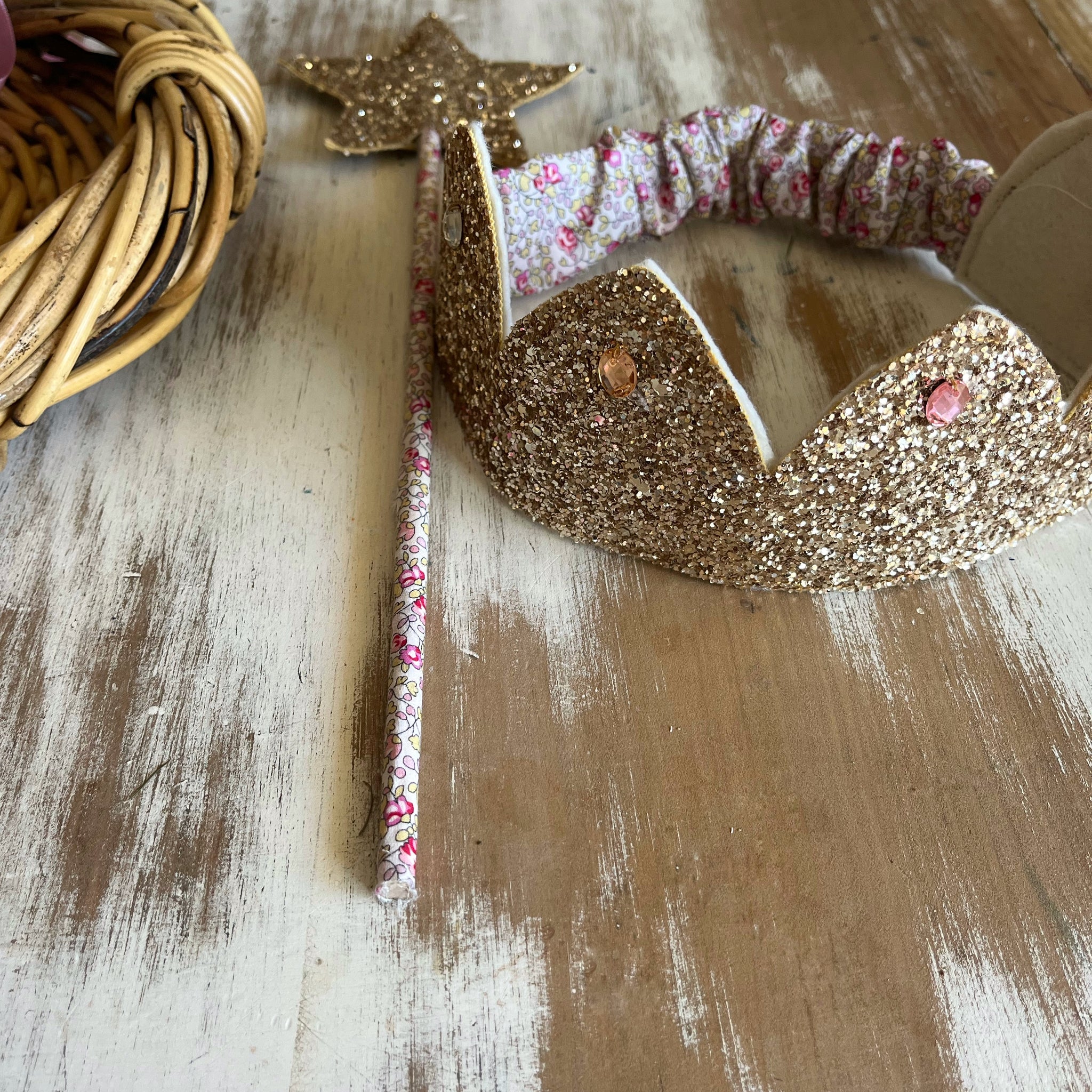 pale gold glitter crown with jewels soft felt backing